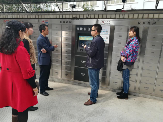 妥邮科技负责人在航兴花园接待国家邮政报记者,介绍了e邮取智能信包箱的功能,不论从美观度、便捷度、安全性上,都相比传统信包箱上有质的提升。业主、快递员和小区物业都表示,改造的太好了,完善了业主的取件体验,也大大减轻了快递员和物业的工作量。
