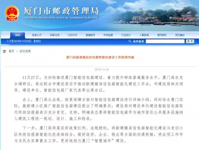 厦门市住建局、邮政管理局加快推进智能信包箱建设工作